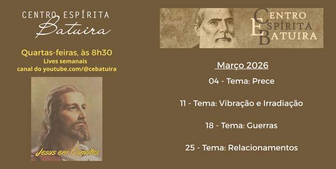 Ao se abrir este espaço, o Centro Espírita Batuira, apresenta-se agradecido a Deus, a Jesus, aos Amigos Espirituais, por poder participar de mais um trabalho na seara do Pai.